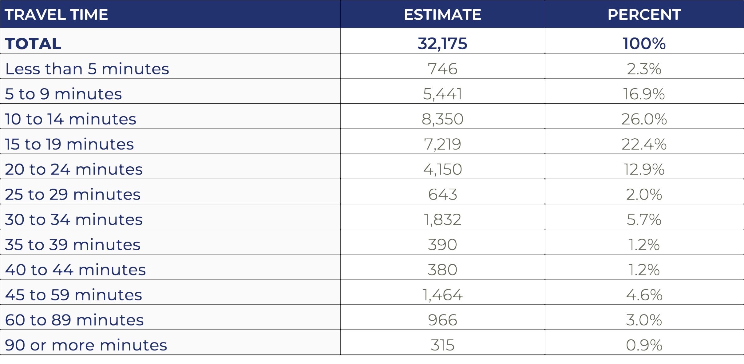 By Travel Time to Work (Population 16+):